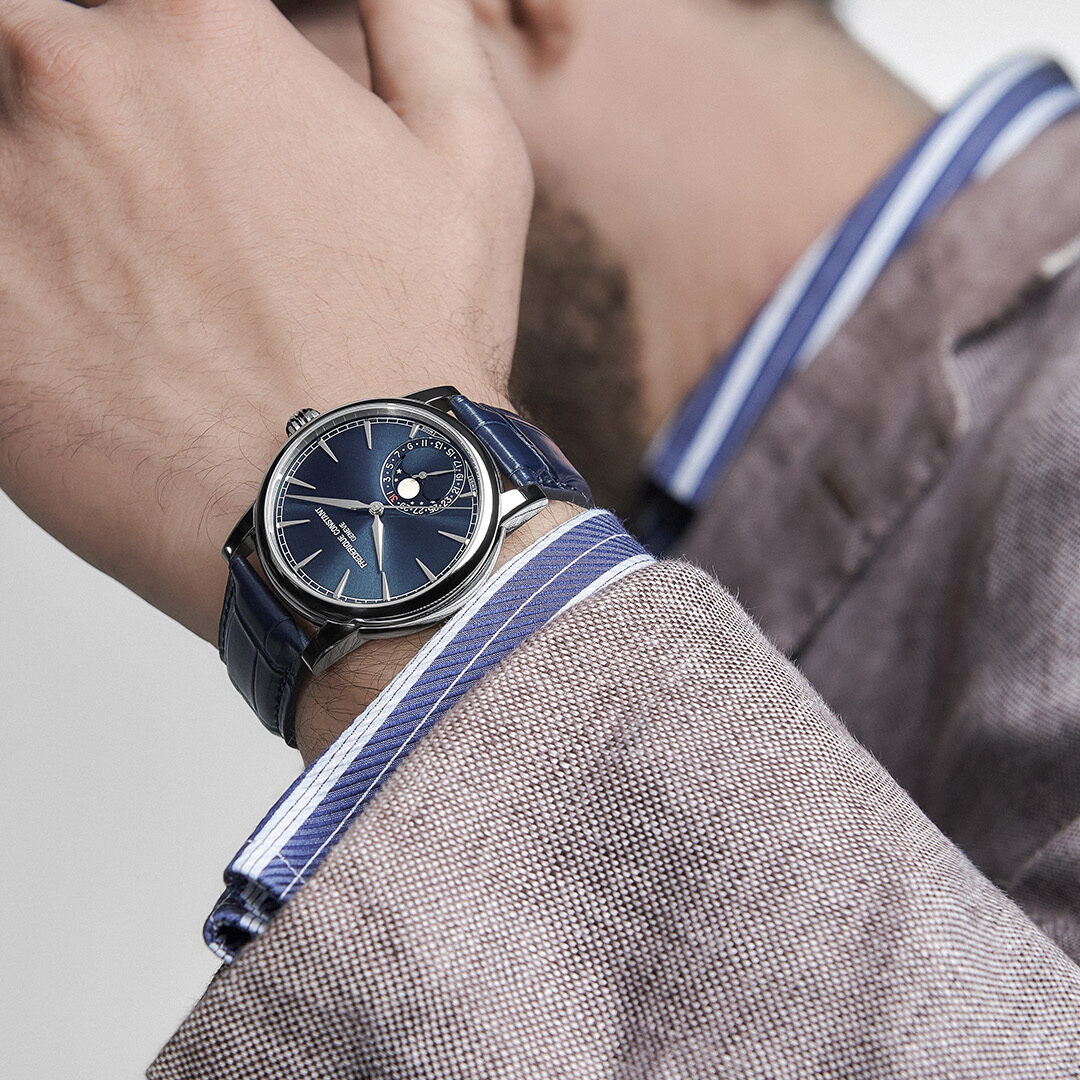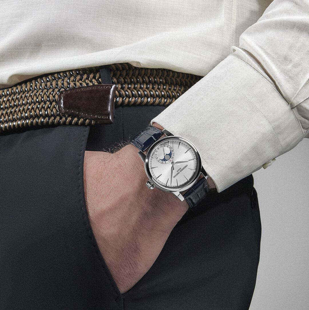 ブランドの技術力を象徴するモデルが「クラシック ムーンフェイズ デイト マニュファクチュール」です。