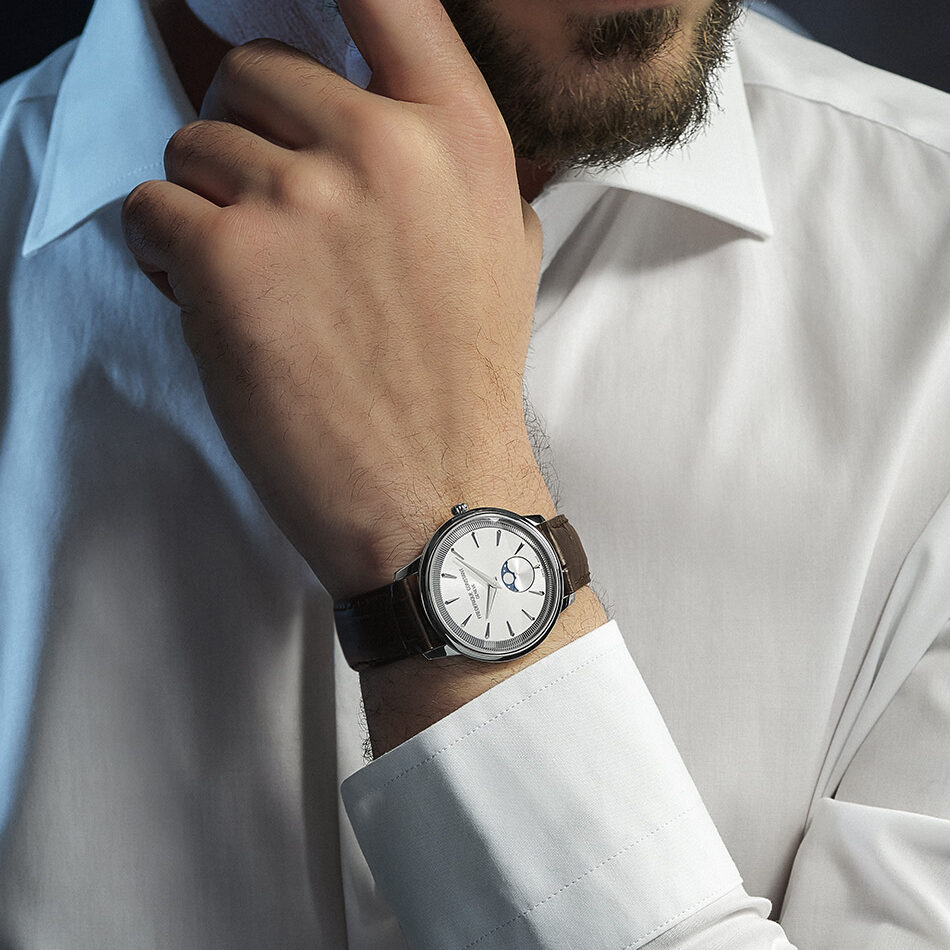 フレデリック・コンスタントの時計は、クラシカルでエレガントなデザインを大切にしながら、日常に寄り添うタイムピースとして生み出されています。特別な瞬間だけではなく、何気ない日常の時間をも豊かにしてくれる存在です。