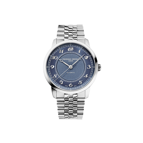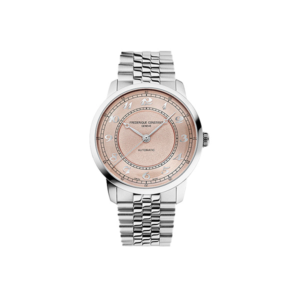 フレデリック・コンスタントの「クラシック プレミア」から2つの新しいモデルが登場します。今年度のシグネチャーカラーであるクラウドブルー、そしてサーモンピンクカラーのダイヤルに、ステンレススチールケースに初となる5連ブレスレットを組み合わせました。小ぶりな38.5 mm径サイズはそのままに、オリジナルのレザーストラップバージョンよりもアーバンで現代的なたたずまいにアレンジしました。ユニセックス仕様の新しい「クラシック プレミア」は、日々まとうことのできる自動巻きモデルです。