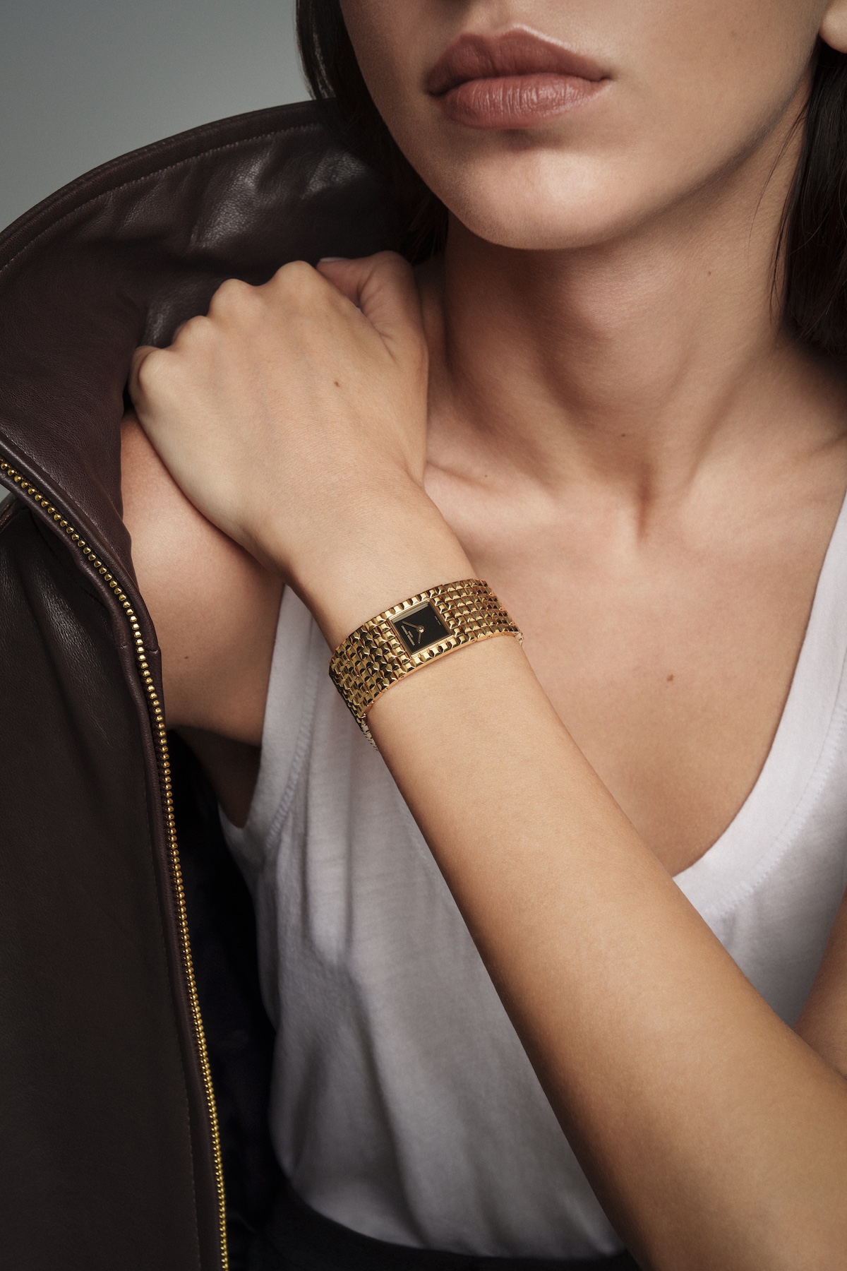 20年以上ぶりに復活を遂げた、カフウォッチのアイコン「マンシェット」。“時を読む”以上に“装うこと”を楽しむ、フレデリック・コンスタントが贈るジュエリーウォッチです。7リンク構成のブレスレットと一体化したスクエア文字盤が、手元をエレガントに引き立てます。吸い込まれるような漆黒のオニキスをダイヤルに採用。ミラーポリッシュの針が、モノトーンスタイルに洗練された輝きを添えます。