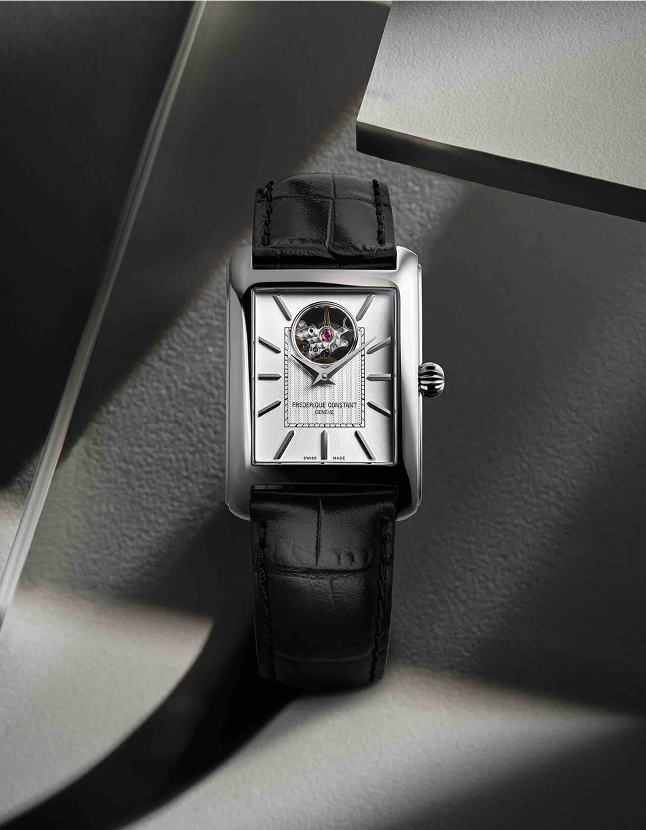 従来の時計業界にはなかった「文字盤に穴を空ける」というアイデアは斬新で瞬く間に大人気のコレクションとなり、フレデリック・コンスタントの代名詞ともいえる象徴的なアイコンとなりました。