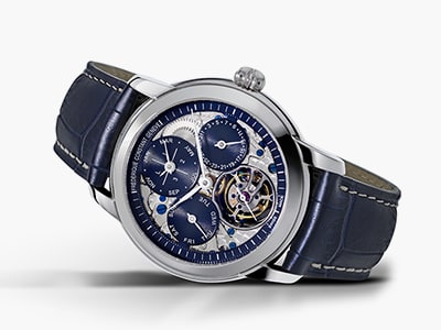 創業30周年を記念してトゥールビヨンとパーペチュアルカレンダーを同時搭載した自社製コンプリケーション、キャリバーFC-975を発表。毎時2万8000振動の自動巻きFC-975はシリコン製のガンギ車とアンクルを備えるため、温度変化にも対応する。