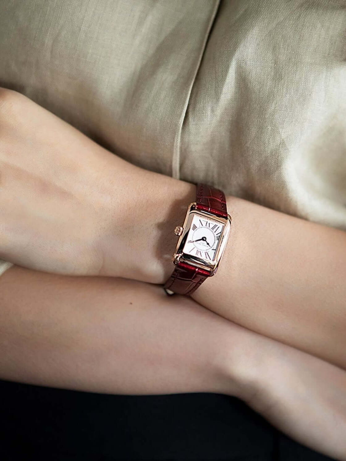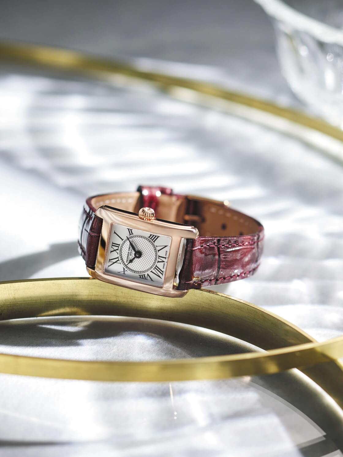 フレデリック・コンスタントを代表するレディースコレクション。フランス語で「スクエア」を意味するカレ。1920年代後半に時代を博したエレガントでファッショナブルな女性からインスピレーションを受けたデザインは、ローマ数字のインデックスや、ギョーシェ装飾を施したダイヤルといった細部にまでこだわり、クラシックでありながら、スタイリッシュな時計です。
