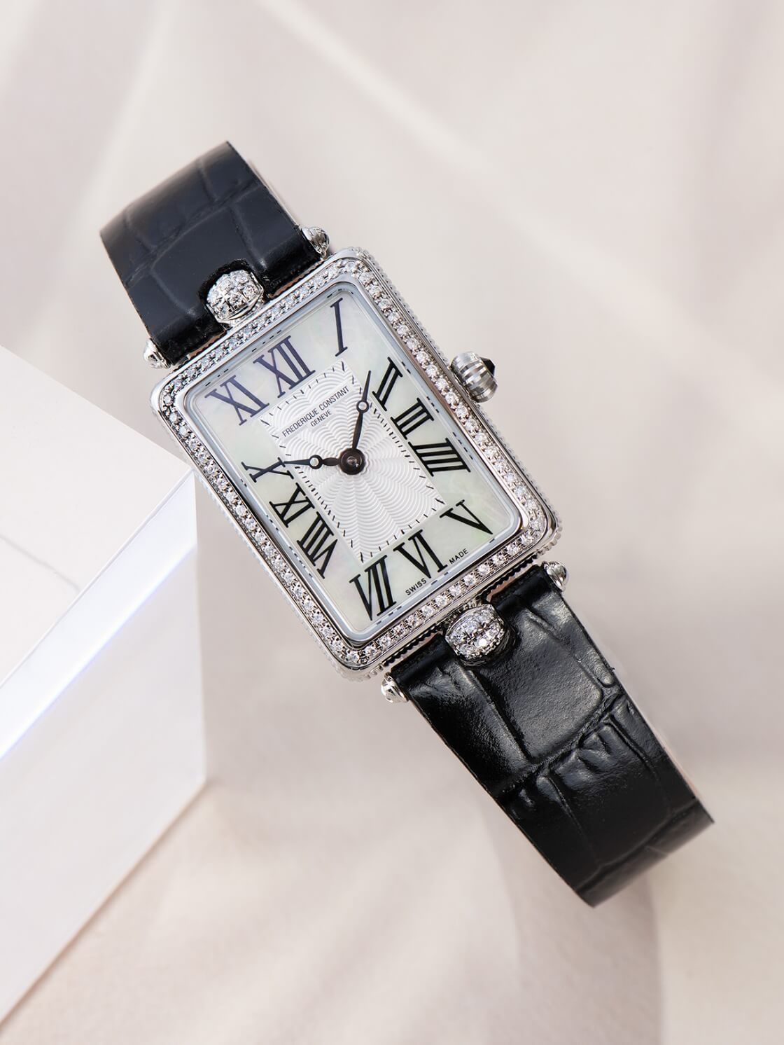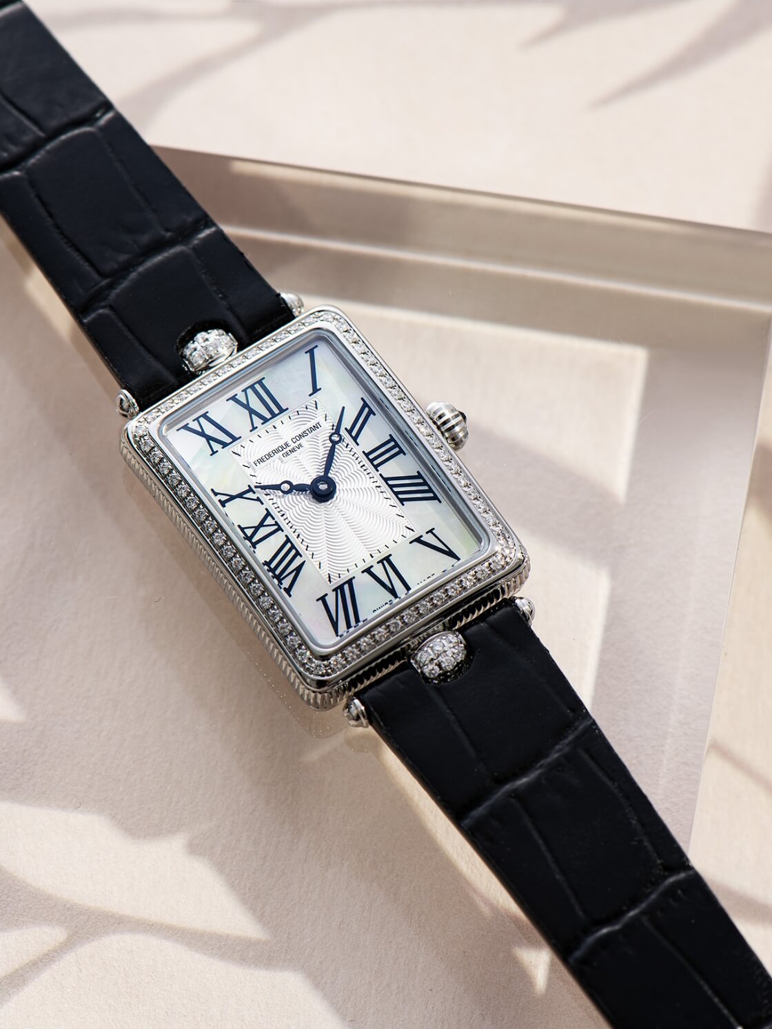 2005年に誕生したフレデリック・コンスタントのクラシック アールデココレクションに、レクタンギュラーケースが新登場。よりスリムなデザイン、新しいケースサイズに合わせたマザーオブパールの文字盤、ギョーシェ装飾やローマンインデックス、コインエッジなどを用いたクラシックデザインです。クラシック アールデコ カレは、日々のパートナーとして、そして気品あふれるジュエリーウォッチとして一緒に時をすごせるようデザインされたタイムピースです。