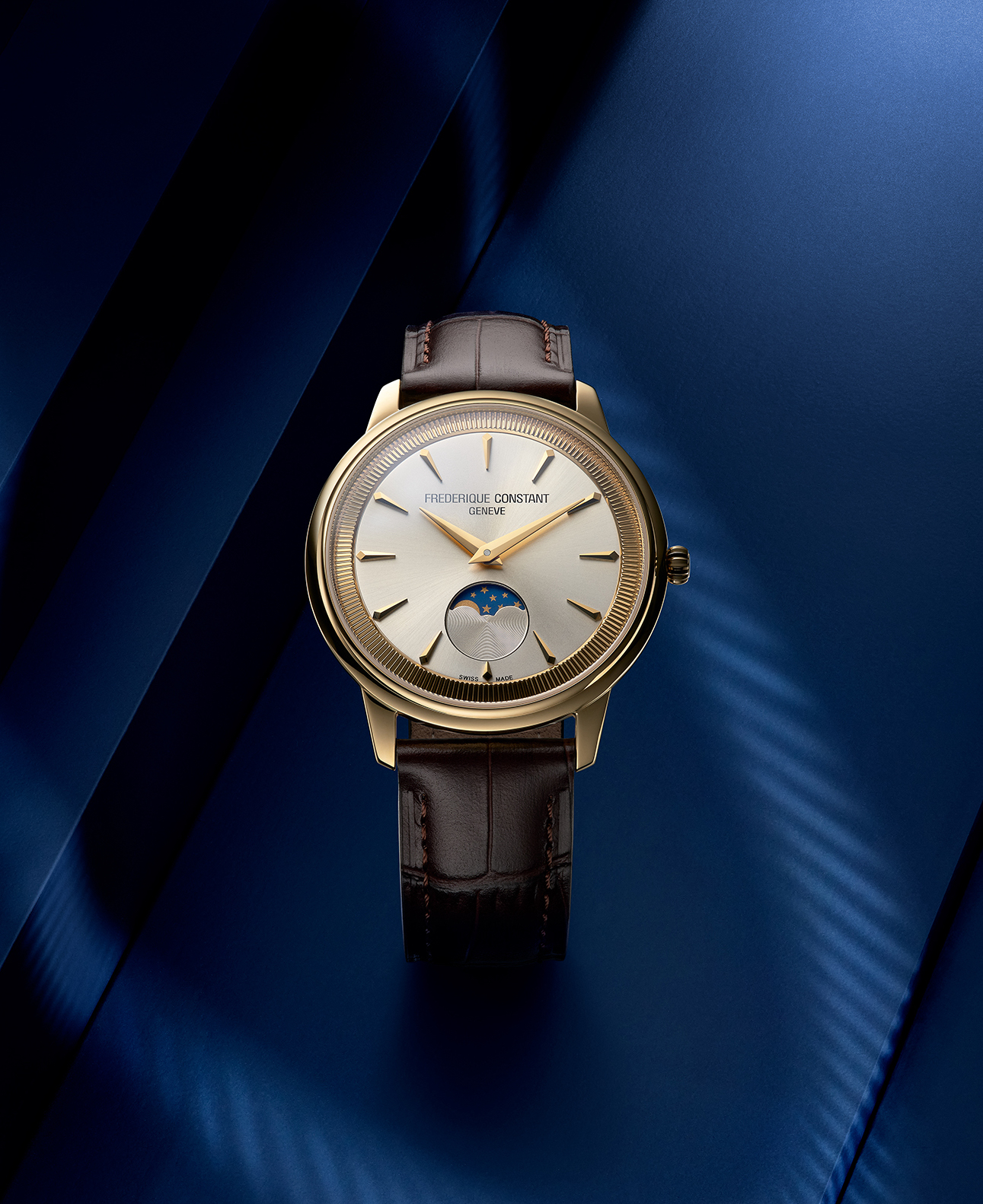 ムーンフェイズを搭載した2針のクォーツモデル「クラシック モネータ ムーンフェイズ」。文字盤のフランジに施した伝統的な硬貨模様(コインエッジ)がコレクション名の由来です。37㎜の小振りなケースに、ソレイユ仕上げの文字盤。スリムな楔型アプライドインデックス、手仕上げのドルフィン針とムーンフェイズを配したクラシカルながらも個性的な時計です。リューズ一つで全ての調整が可能です。