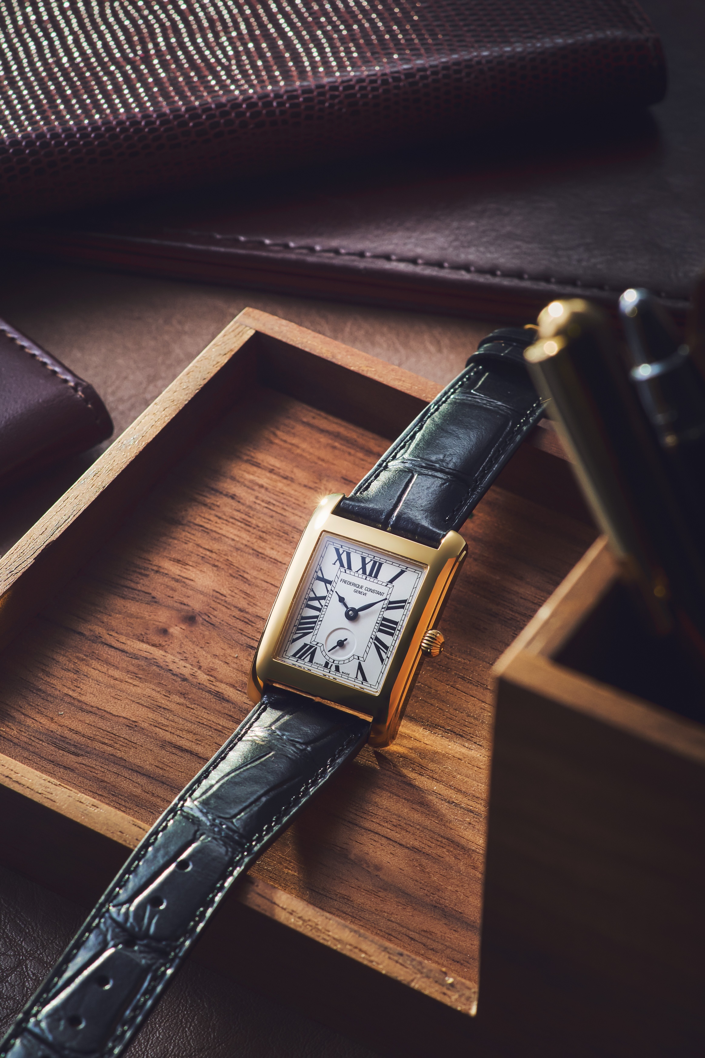 フランス語でスクエアを意味する“カレ”コレクションに、24年秋、仲間入りしたスモールセコンドを搭載した「クラシック カレ スモールセコンド」。サイズがトレンドの小径、ノンジェンダーのミドルサイズとなり、使い勝手のよさで人気です。25年夏登場のイエローゴールドカラーのケースとブラックの牛革ストラップのモデルは、クラシカルな雰囲気で正統派のドレスウオッチをお好みの方に絶好な時計です。