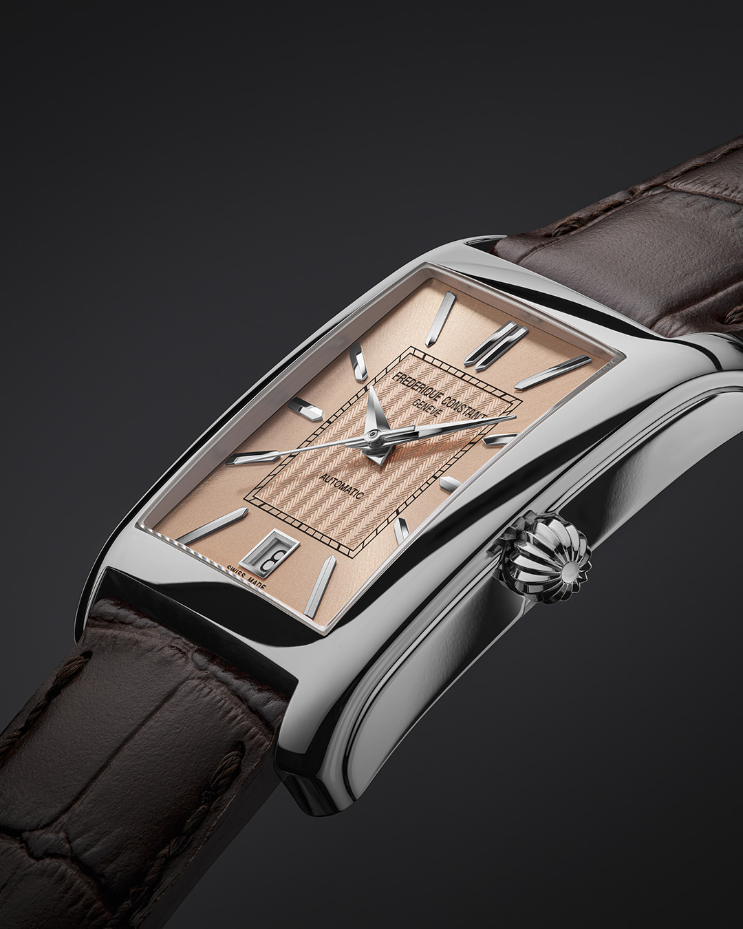 2003年に初登場以来、さまざまなラインナップで人気のコレクション「クラシック カレ」。新作はムーブメントを包み隠したスタイリッシュな文字盤で登場です。アールデコの典型的なデザインで、ケース、レイルウェイ、デイト表示と、カレ“角”をベースにしたバランスがとても美しい時計。バーインデックスと2面ファセット仕上げのドルフィン針、控えめながらも実用的なデイト表示を設けたミニマリストスタイルです。