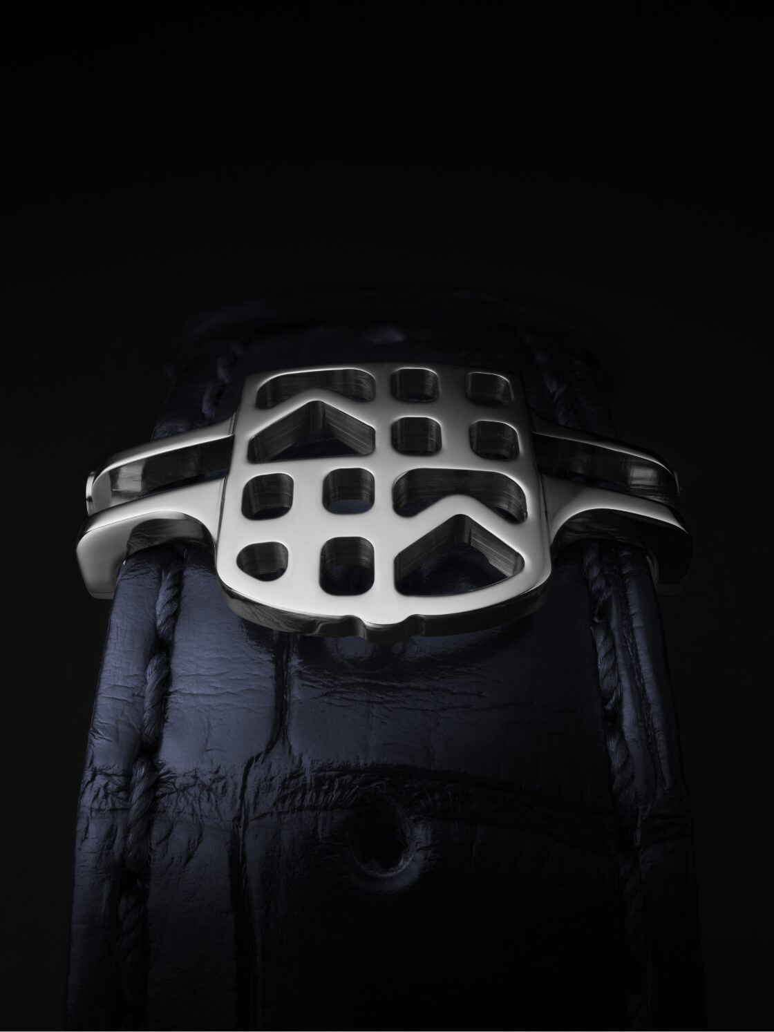 創業35周年記念モデル「クラシック トゥールビヨン マニュファクチュール」は39㎜と小振りになったケースサイズに、6時位置のオープンハートはより大きく開口し、トゥールビヨンがより際立つデザインとなりました。 トゥールビヨンには、シリコン製のガンギ車とアンクルが備わっており、耐磁性にすぐれ、温度変化の影響を受けないため、本来の機能に加えて、時計の精度も向上しています。ソレイユ装飾文字盤に、細長いフォルムの手仕事で研磨したダイヤモンドカットエッジを用いたファセットカッティングでより輝くシルバーカラーのアプライドインデックスと針が配されており、最先端のタイムピースに仕上がっています。