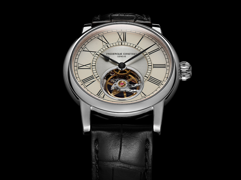 自社製ムーブメントを搭載する「マニュファクチュール コレクション」は草案、開発、製造、組み立て、調整、およびケーシングのすべての工程をスイスのプラレワットにあるフレデリック・コンスタントの工場で行っています。多様な作業のほとんどは手作業で行われており、フレデリック・コンスタントが手掛ける時計の中でも最高峰のスペックを誇ります。時計製造の専門家によるキャリバーの開発がスタートしたのは、2001年のこと。シリコンなど最新素材を積極的に採用、革新的なムーブメント開発にチャレンジし、トゥールビヨン、パーペチュアルカレンダー、フライバッククロノグラフなど現在までに33個の自社ムーブメントを開発しています。繊細なギョーシェ模様が美しくエングレービングされたダイヤルやムーブメント、アリゲーターのストラップ、サファイアクリスタルのシースルーケースバック、光沢のあるステンレススチールや艶やかなローズゴールドなどの厳選された素材、これらすべてがこのコレクションの際立つ特徴です。「マニュファクチュール コレクション」では、フレデリック・コンスタントが誇る技術面でのノウハウを余すところなく表現しています。